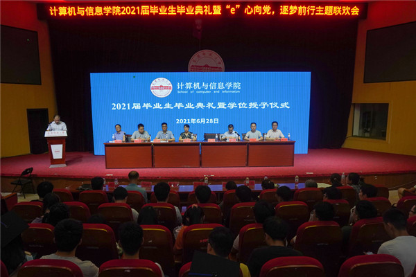 “畅想青春的旋律,把握无悔的明天。”6月28日晚,2021届毕业生毕业典礼暨“e”心向党,逐梦前行主题联欢晚会在图书馆东厅举行。公司全体领导、教师代表、毕业班辅导员和毕业生等400余人参加典礼,典礼由党委副书记江晋剑主持。